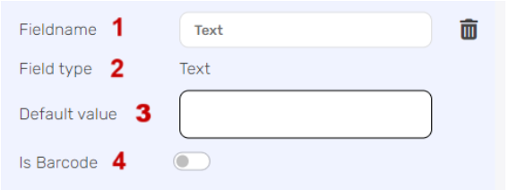 - Is Barcode (toggle) – Enable to use the field as a barcode scanner.