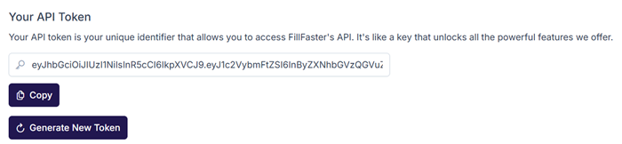 - Token – Generate your unique API Token from your FillFaster Account Settings. paste the API Token you copied earlier from the Developer section.