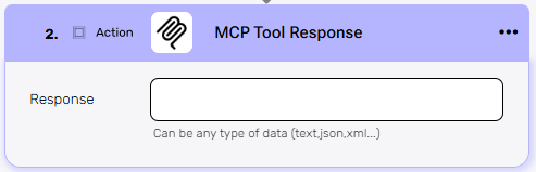 The MCP Tool Response action is used to send a structured reply back to the AI tool that triggered the workflow.