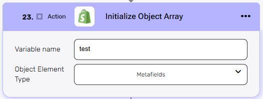 Create a variable and set its Object Element Type to Metafields. This variable will hold all Metafield objects.