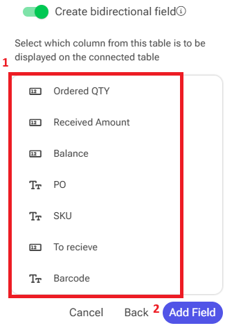 2. Select the field you want to display from the connected table you chose. You can either search for it using the search box or click directly on the field.