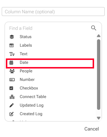 The date column allows you to set dates for your tasks, such as dates the items were created or due dates. The default option is date only but you can choose to display the date with or without the time.
