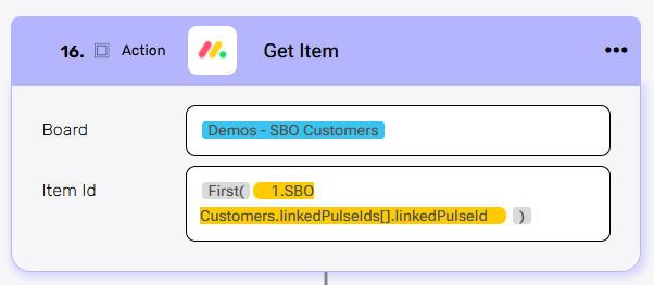 Select from the drop-down menu the “Demos – Subitems of SBO Opportunities” board option. - Item Id