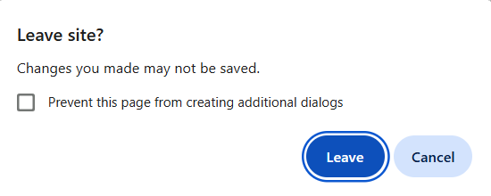This is an extra layer of protection to ensure you don’t lose your work unintentionally. You can choose to leave the page or remain on the Engini page by clicking Cancel.